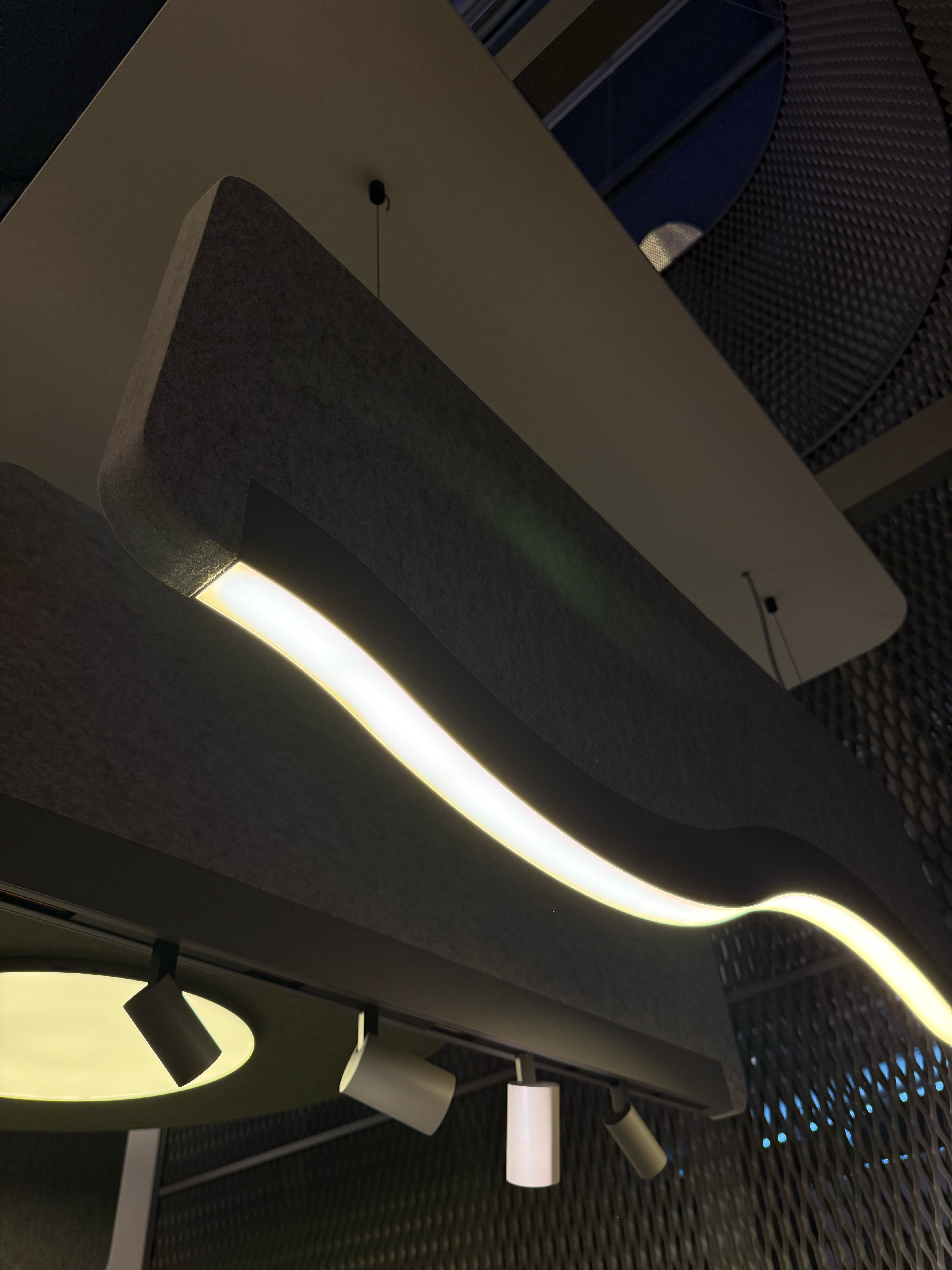 Integrasjonen av lys og akustikk var en gjennomgående trend som var mye mer i bruk i Europa sammenlignet med Norge. Akustikkplater med innebygd belysning brukes ikke bare for å forbedre lydmiljøet, men også som aktive designelementer. Ulike former, utskjæringer og farger gir arkitekter og designere nye verktøy for å forme rommet visuelt.