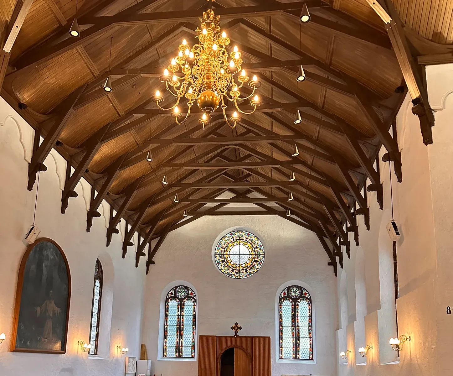 Det er satt opp et Dali programmerbart styringspanel i nærheten av alteret, der det er programmert inn 9 forskjellige scenarier som passer til kirkens bruk.