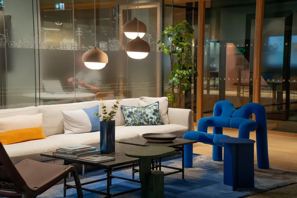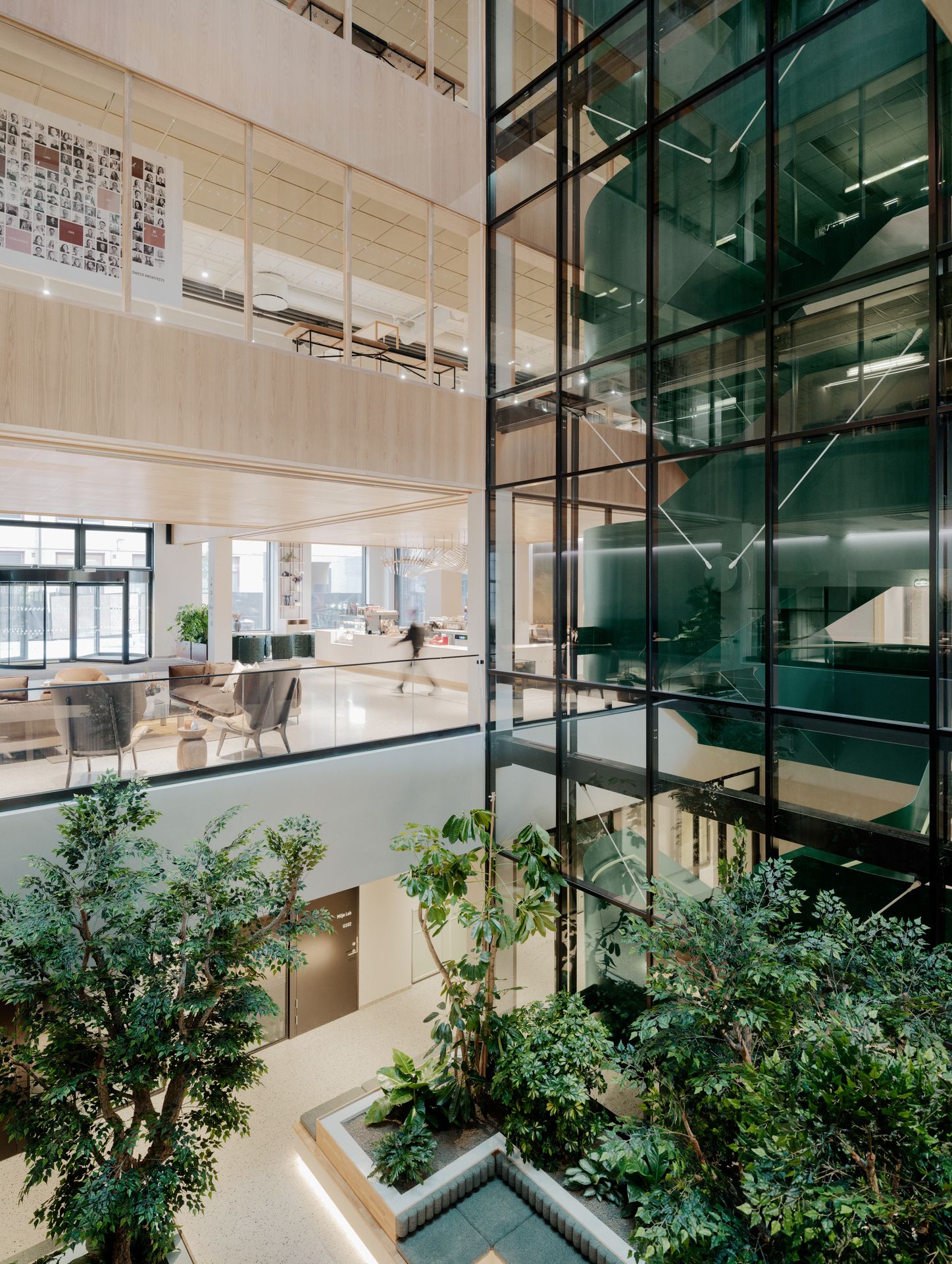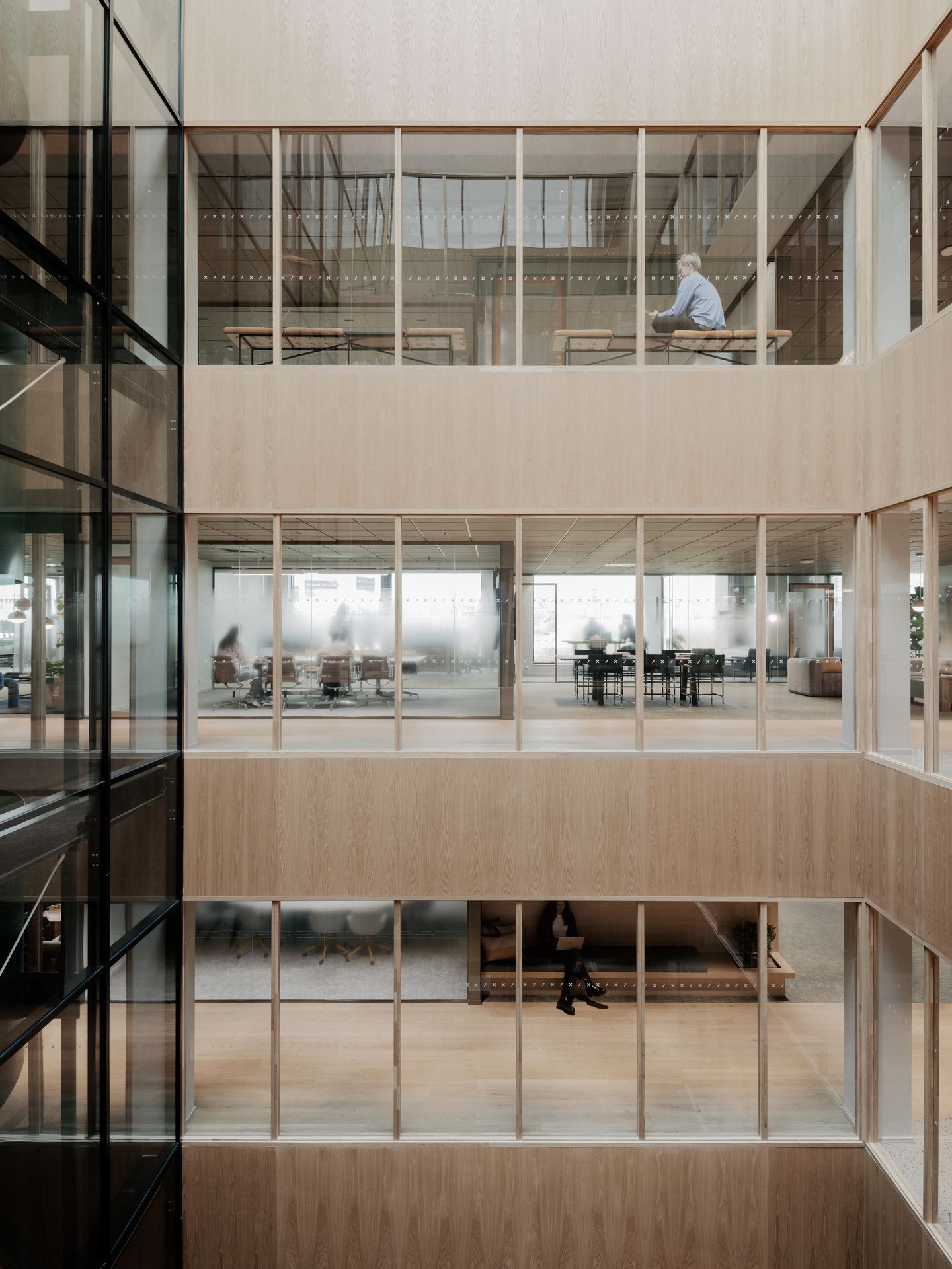 I de sosiale sonene har de valgt en grønnfarget nedsenket himling for å skjule all teknikk, noe som gir en lunere atmosfære. Bygget har «free seating», og de forskjellige avdelingene er delt inn i egne etasjer. Delen av bygget som har vindu ut mot Elgparken og Akerselva har både fin utsikt og gode dagslysforhold, så det er ingen tvil om hvor det fylles opp først.